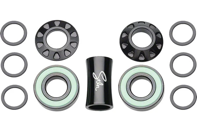 The Revolver bottom bracket features two sealed bearings and 6061 Alloy CNC machined cone spacers with weight saving tear-drop slots.