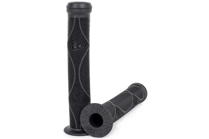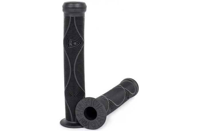 The Genetic Grip was designed with Nick Bullen to include the unique details that suit his riding style as well as provide the everyday rider an extraordinarily functional and great feeling grip. Nick designed a longer grip to match the popularity of brakeless, uncut, wide bars. With the increase of barspins, we offer a small thin flange that does not effect the catch of the an errant throw of the bars. An amazing rib pattern, with Nick Bullen designed graphics bring this grip into a category of its own.