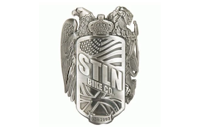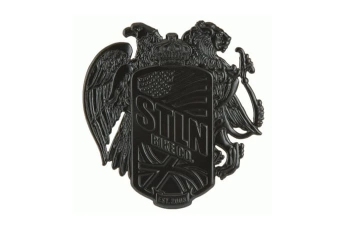 The Eagle and the Lion are symbols of our British and American ownership, The shield represents our owners service in the Marines and the crown represents loyalty. We opened tooling to make a limited run of this badge to celebrate Stolen’s 10 year anniversary. Made from cast aluminum with an aggressive 3M adhesive backing that sticks well to frame headtubes, cars, laptops etc.62mm Tall. 43mm Wide. 16mm Deep.